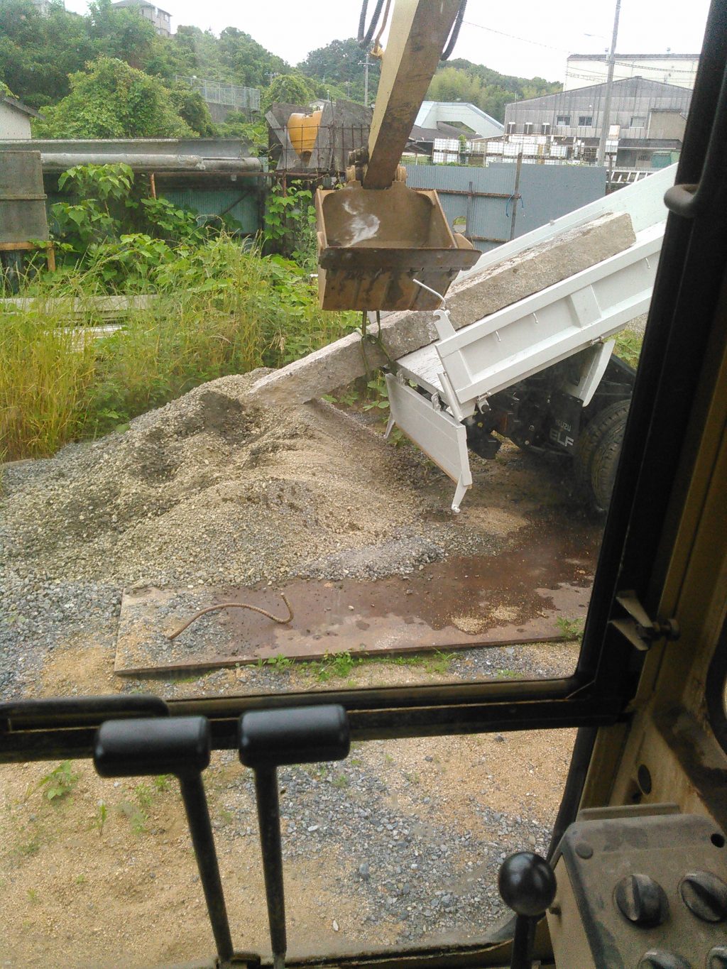 その後、運動会が終わったのも二時ごろのため、仕事を休んじゃろ!!!と思ったんですが、今度玉島でのO様邸新築工事に使う「のべ石」が欲しかったため、解体屋さんへ出かけ物色。