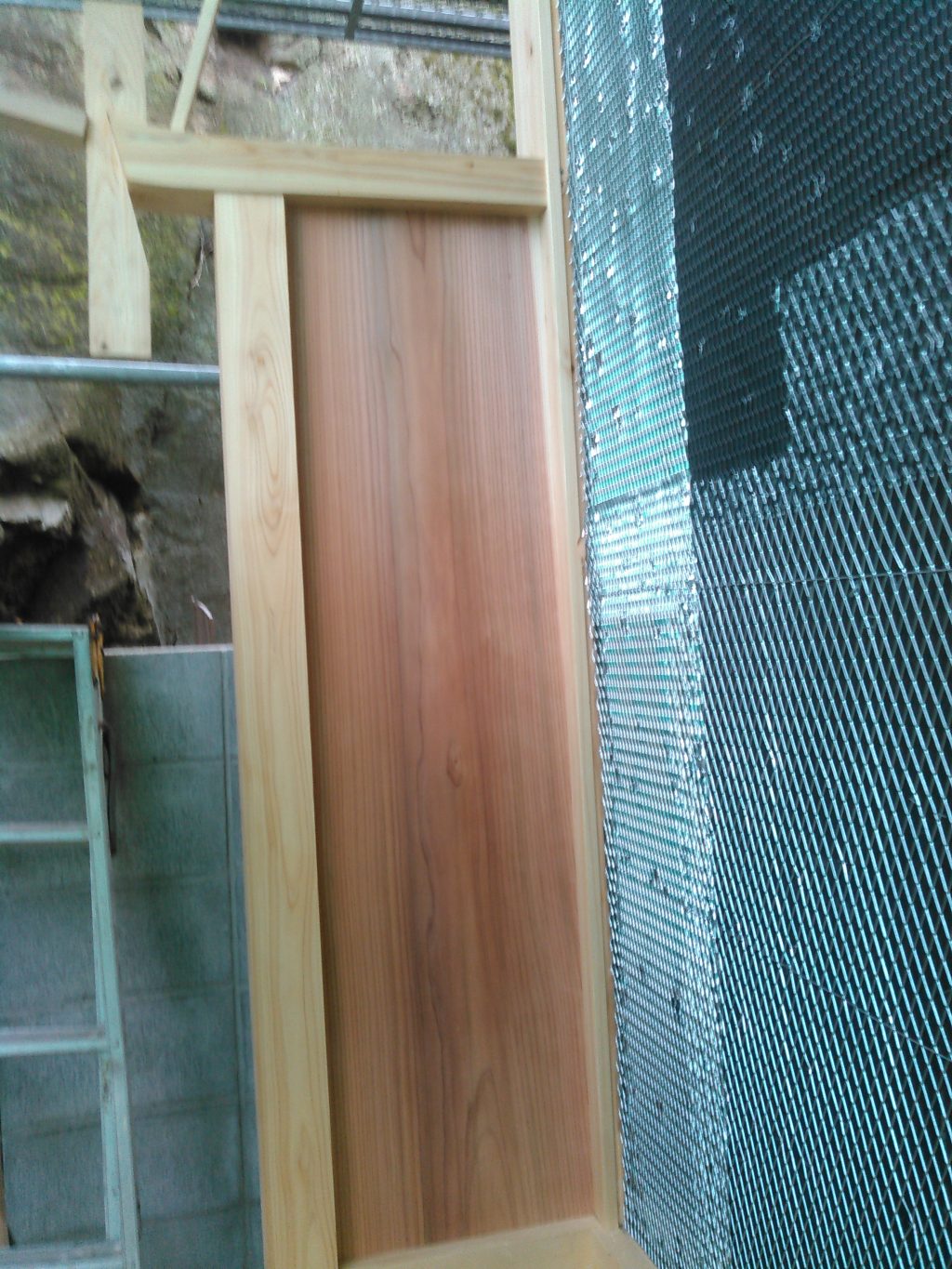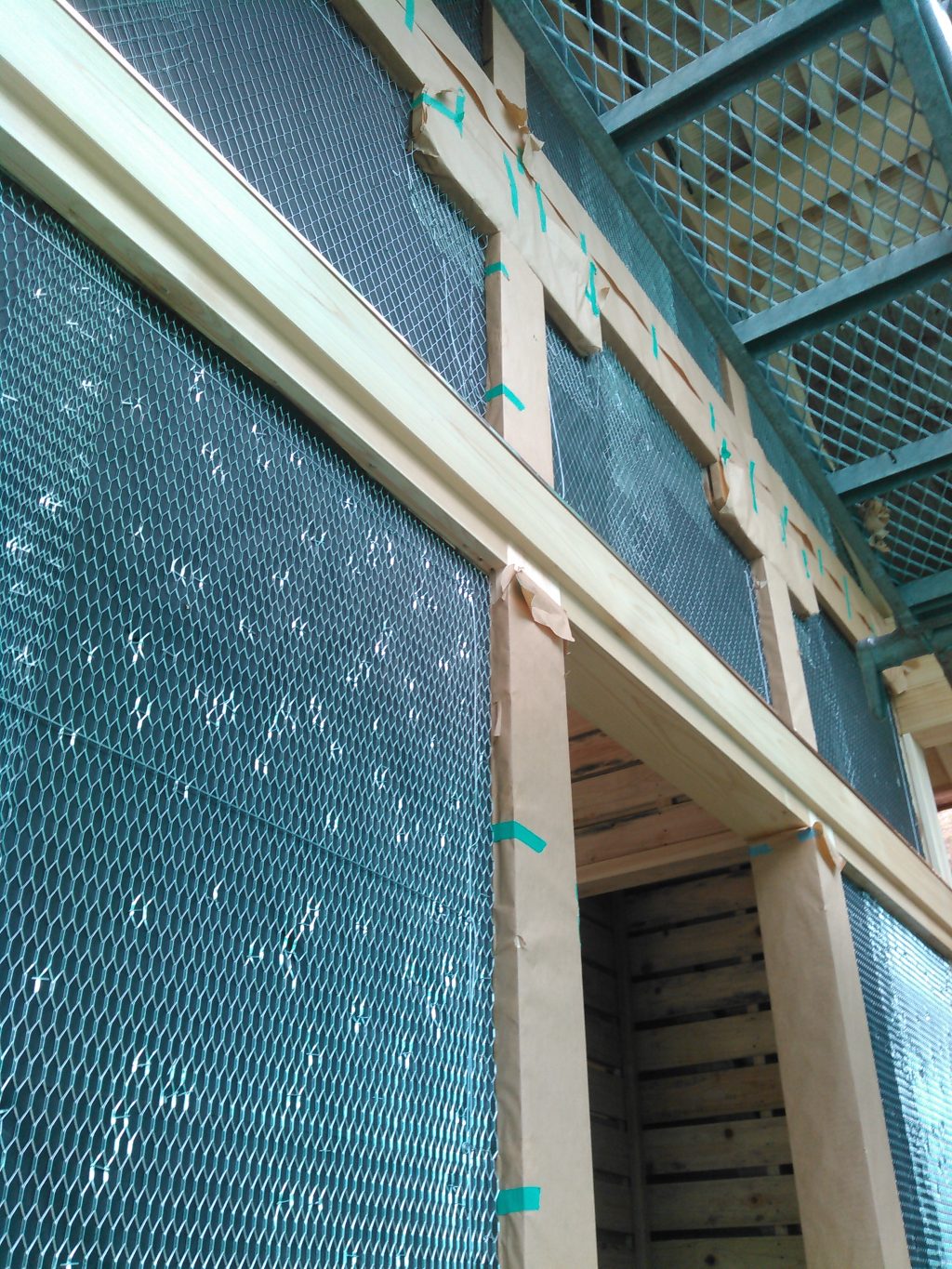 外部では、左官屋さん、板金屋さんがそれぞれの作業も進行中。それを邪魔せんように内部で、祭壇などの組み立てを社長と二人、頑張った一日でした。
