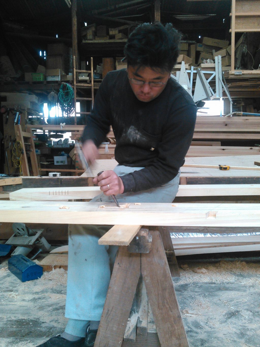 ノミで「カンカン・・・」と穴を掘り、カンナで「チュルチュルッ・・・」と微調整。簡単に言えばこんな感じす。