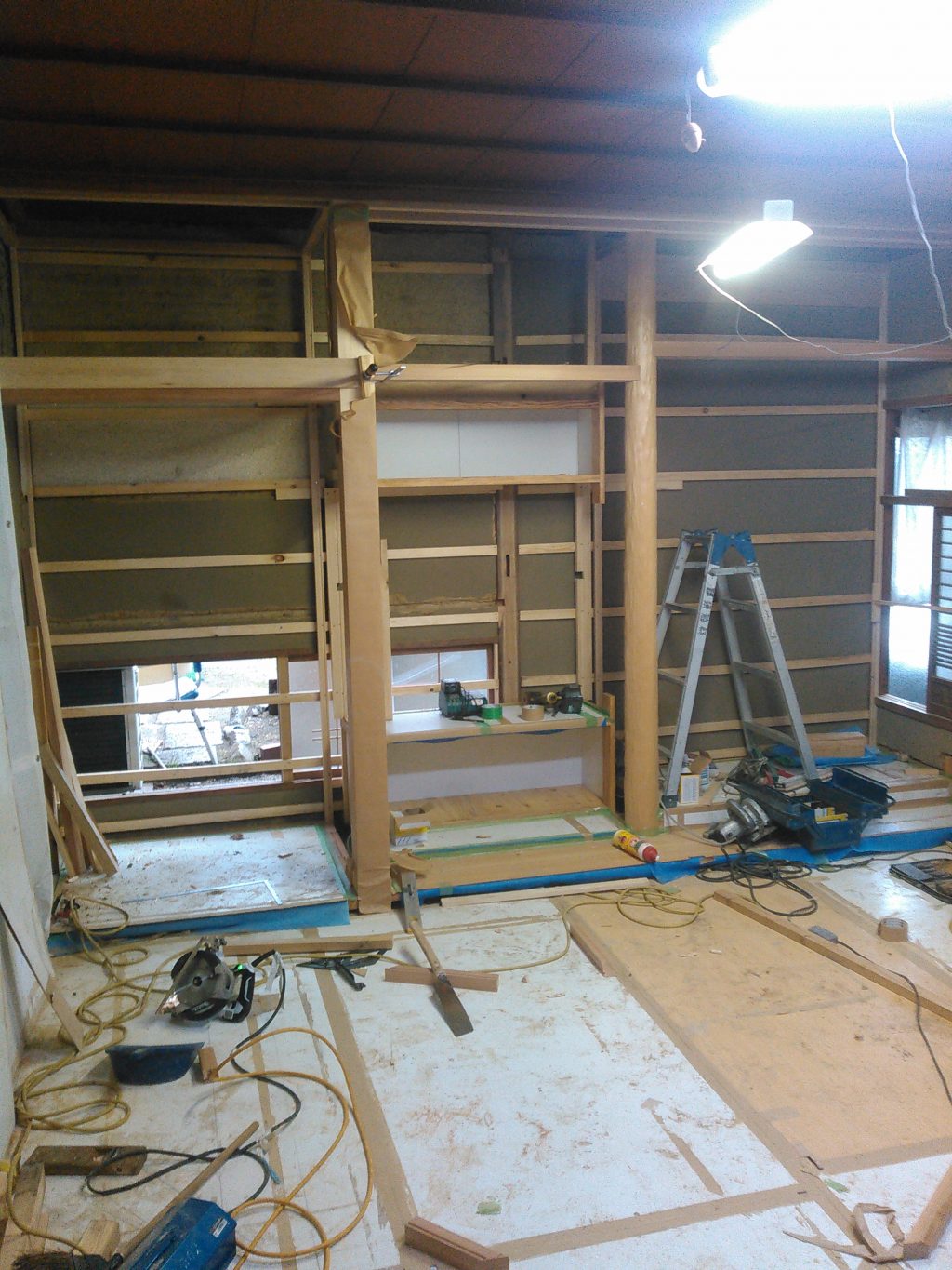 それにしても、作業中は気になりませんが、写真で見ると、道具があちらこちらに散らばり、「片付いていない現場。。。。」一応掃除をしてから、「パシャッと」いつも写真を撮るんですが、これでも割とキレイな方なんです。