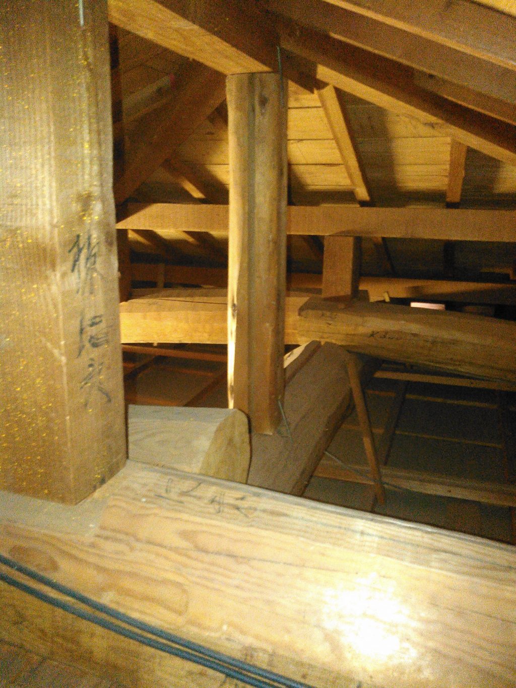 そして天井裏に上がった時、25年前新築時の「ゴヘイ」(本当の呼び名は知らんのじゃけど、那須建築ではそぉ呼んでます)を発見。