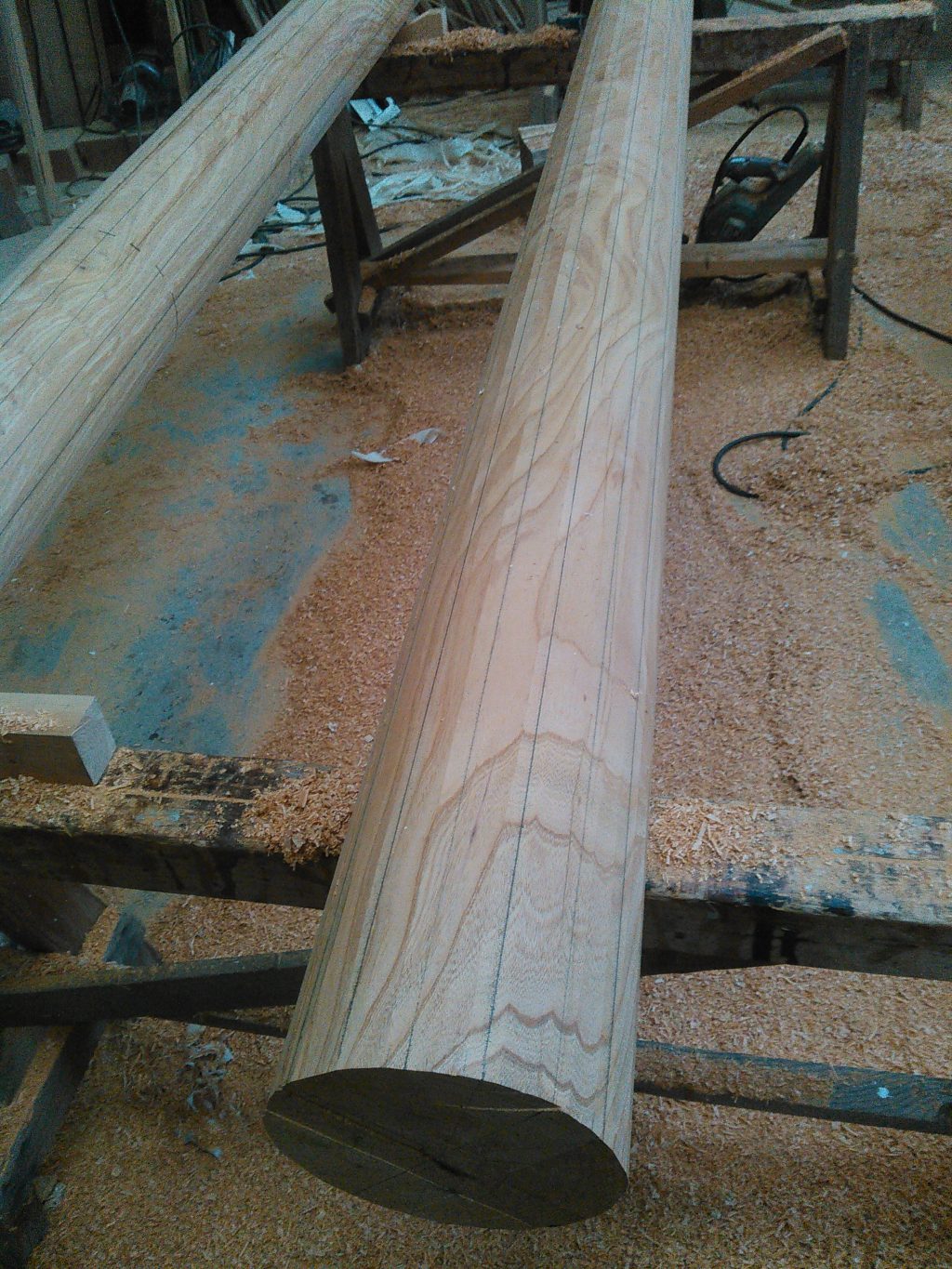 考えてみれば、「床柱の太い物!!!!」基本的には和室などの仕事はいうほど嫌いではない僕ですが、正直今回は、柱の製作から苦労して入り、何とか出来た丸柱。実際加工に入ると手が震える。。。これは誰しも大工さんでは経験あるんでは????