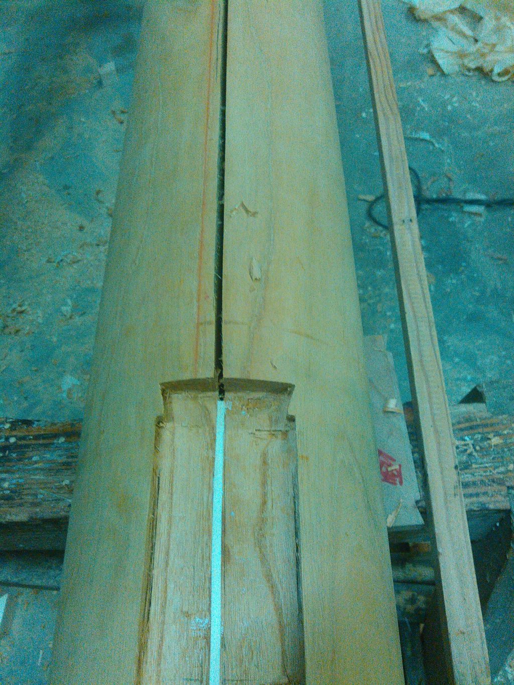 その後、まだまだ続く柱の加工を一人作業場でコツコツ頑張りました。