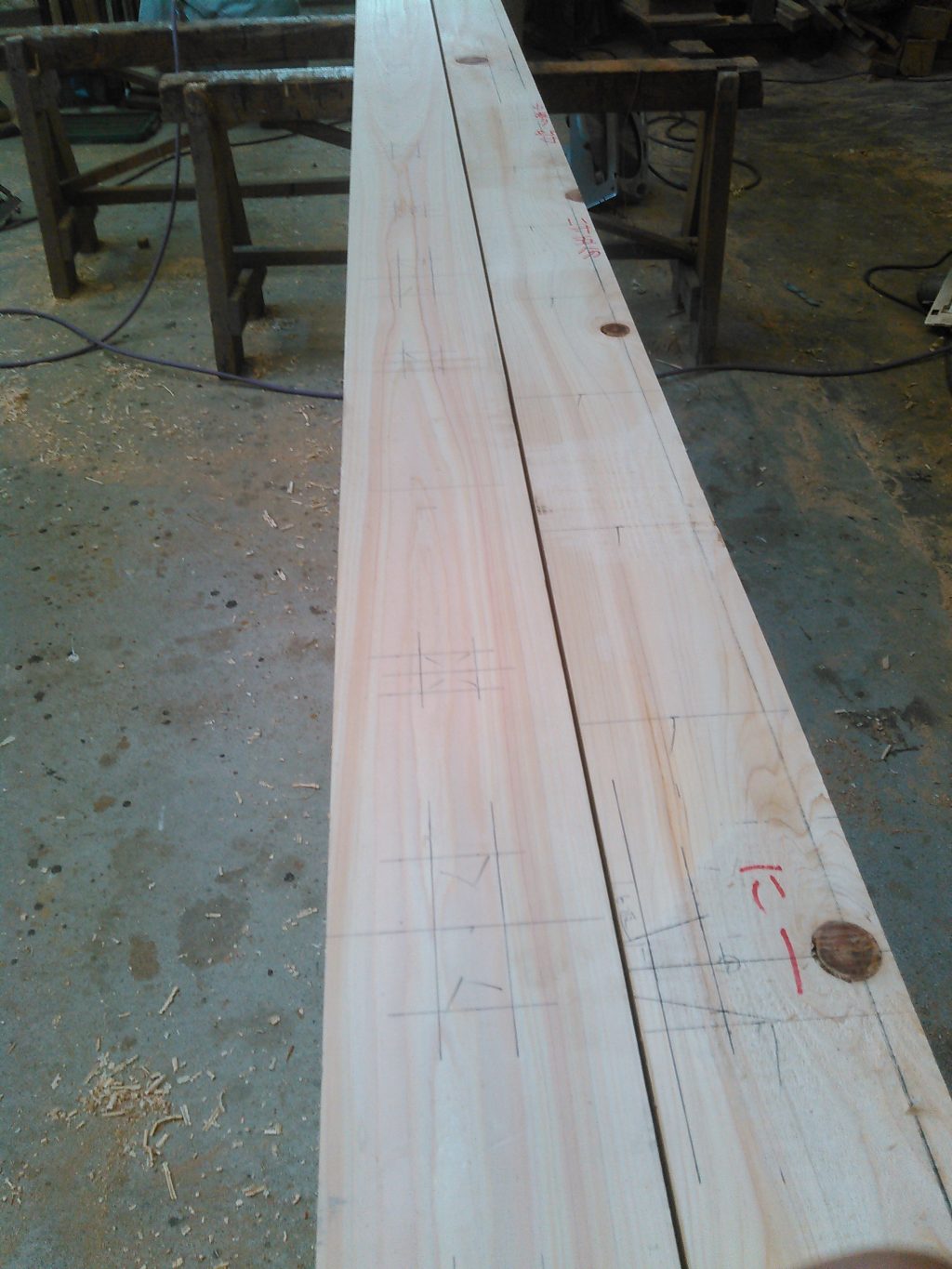 ですが今回は、建物が神社という事や、規模自体が小さい事から、久しぶりに作業場での加工をさせてもらっています。