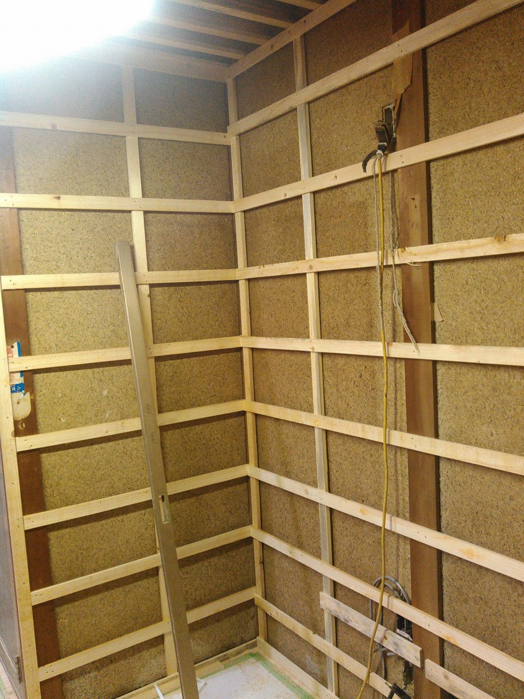 リフォームなどでは、家が傾いたり、柱が曲がったりしとるけん、それを直すのに結構手間のかかる作業ですが、ココを適当にすますと、後の仕上がりが、キチャナクなるため、丁寧に作業を行なった一日でした。