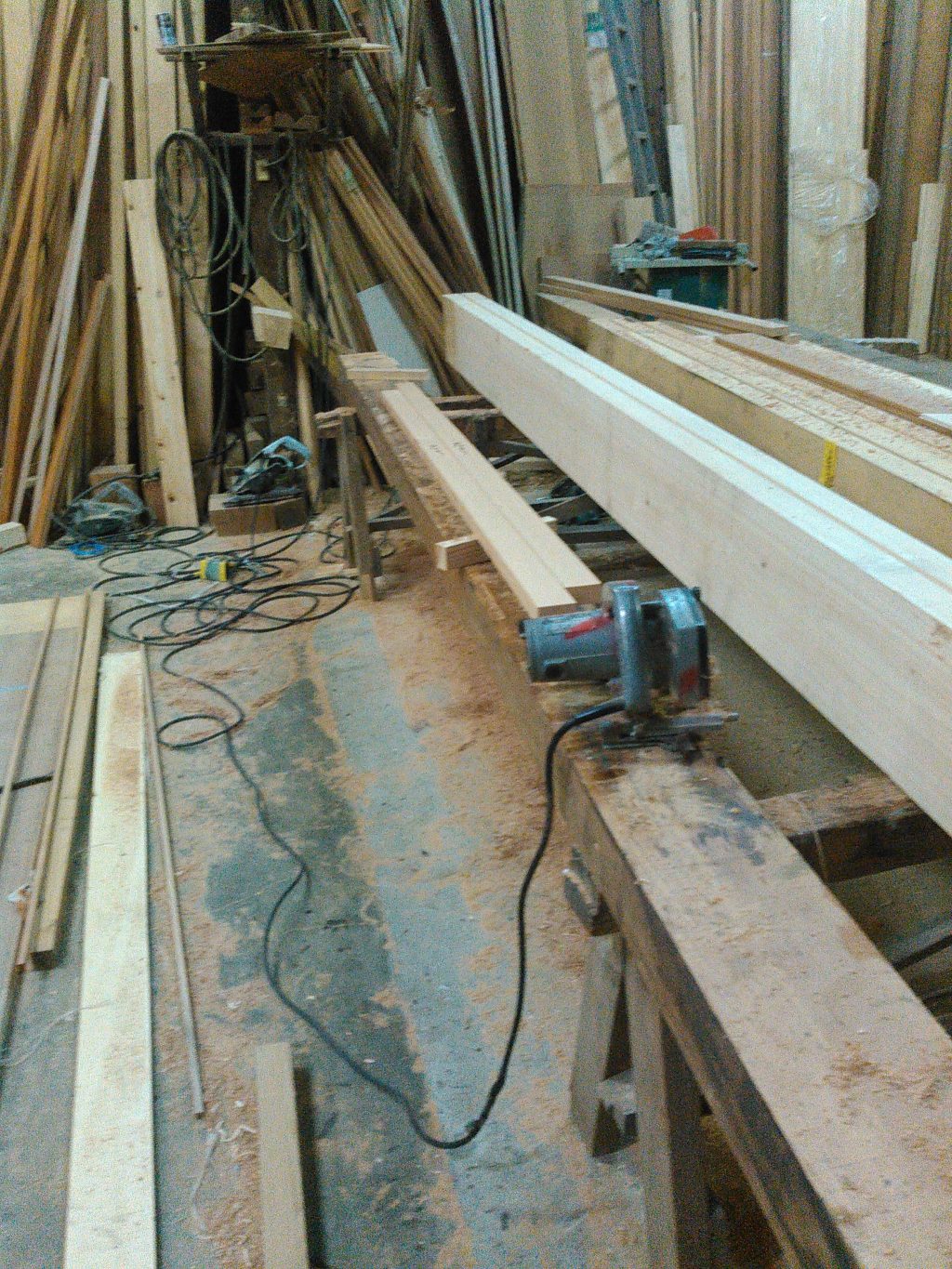 そして社長のほうは、作業場での「見切り」と呼ばれる木材の加工を。