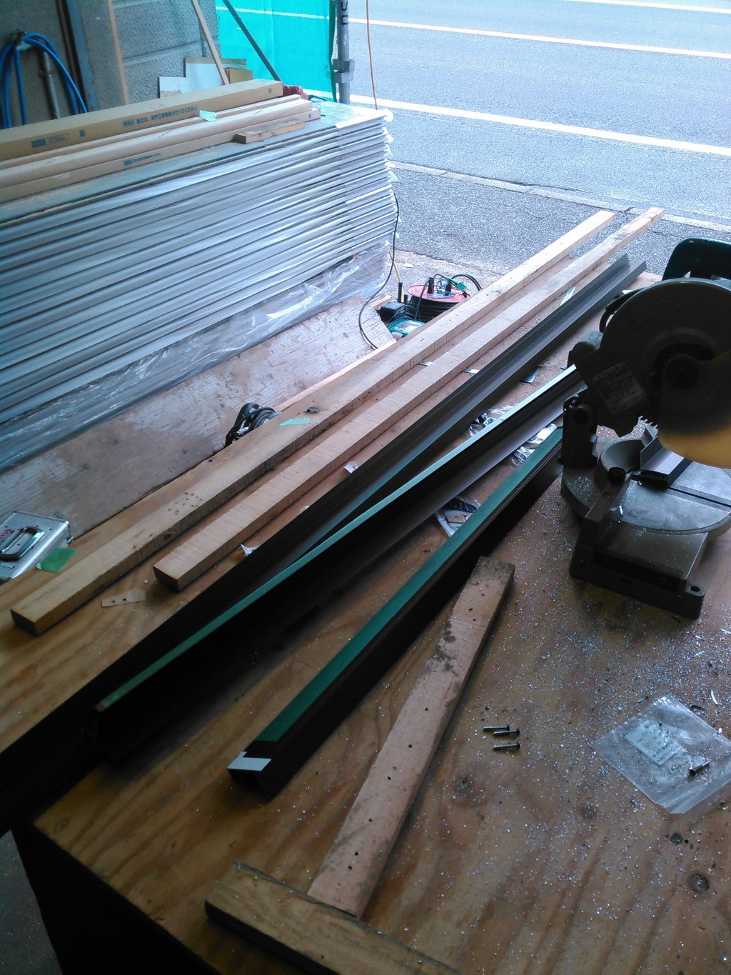 今日の作業内容としては、新しい外壁が今の壁から4センチほど出てくるため、既存のサッシの廻りに、もう一個新しい、アルミの枠を取り付ける作業を中心に、その他いろいろ下準備でした。