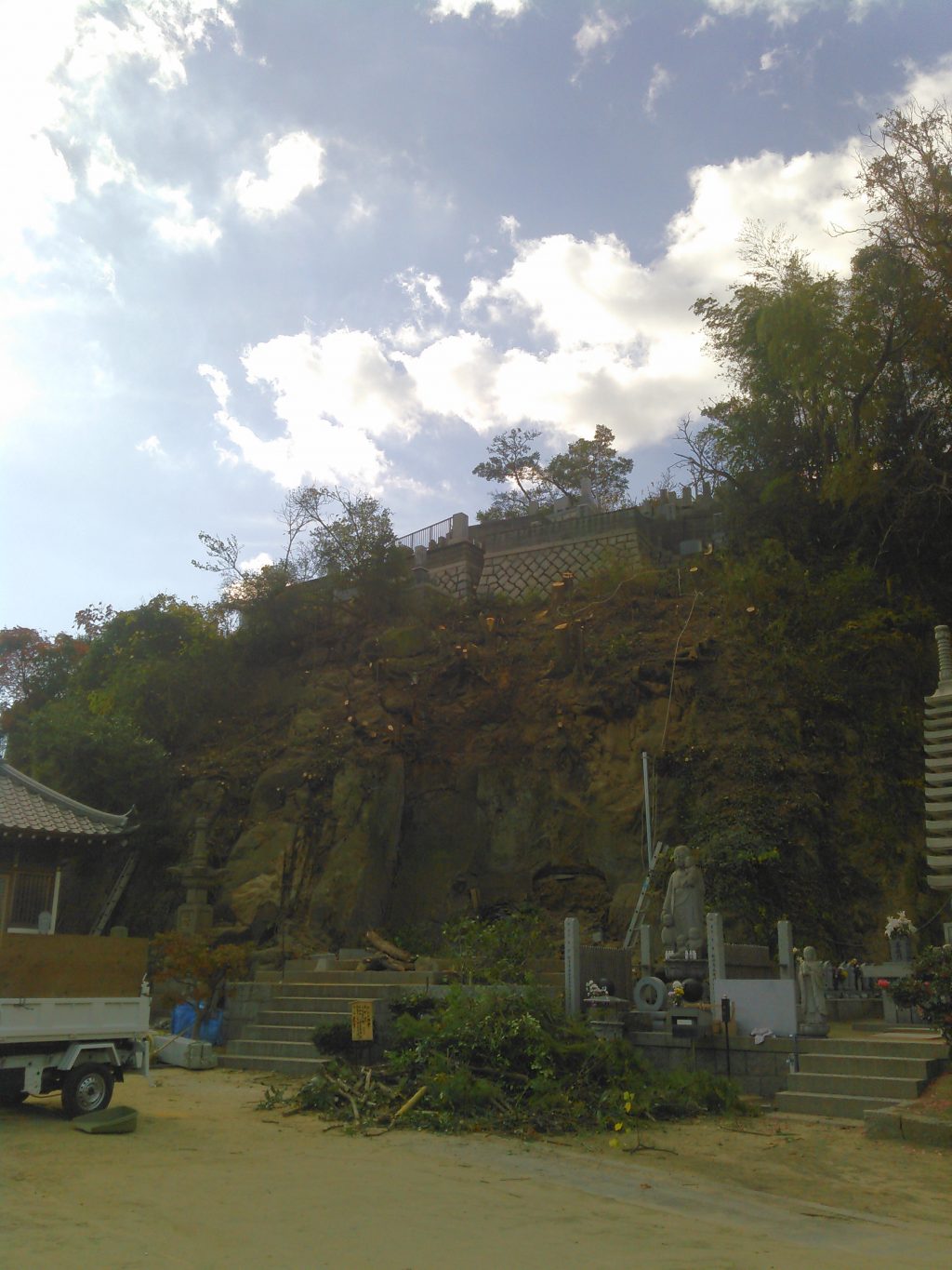 その他、神社の工事も、裏山の木の伐採工事に、造園屋さんが来てくれてました。