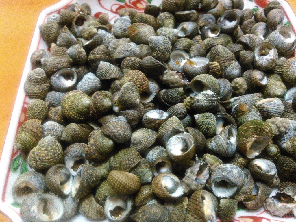 今回は、子供たちを、引き連れ日曜日に、近所の岩場で、約30分程探し、2リットルのペットボトルにイッパイになるまで拾ってきました。そして数日、海水で砂を吐かせ、今晩、酒のあてに、試し食い。