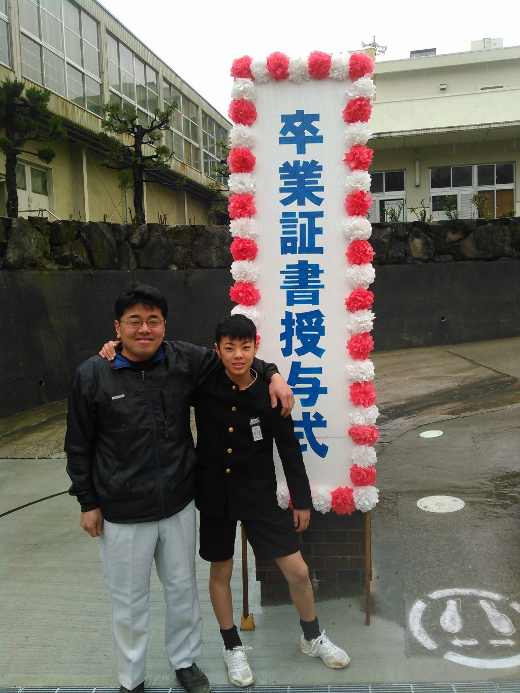 昨日から降り続く雨の朝でしたが、今日は長男ジュン君の卒業式でした。