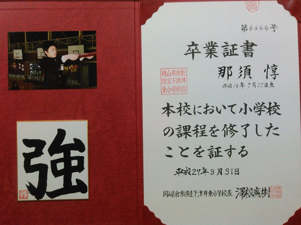 そして話は全然違いますが、那須家の長男ジュン君、今日で小学校の課程を修了しました。明日の卒業式を残すだけです。