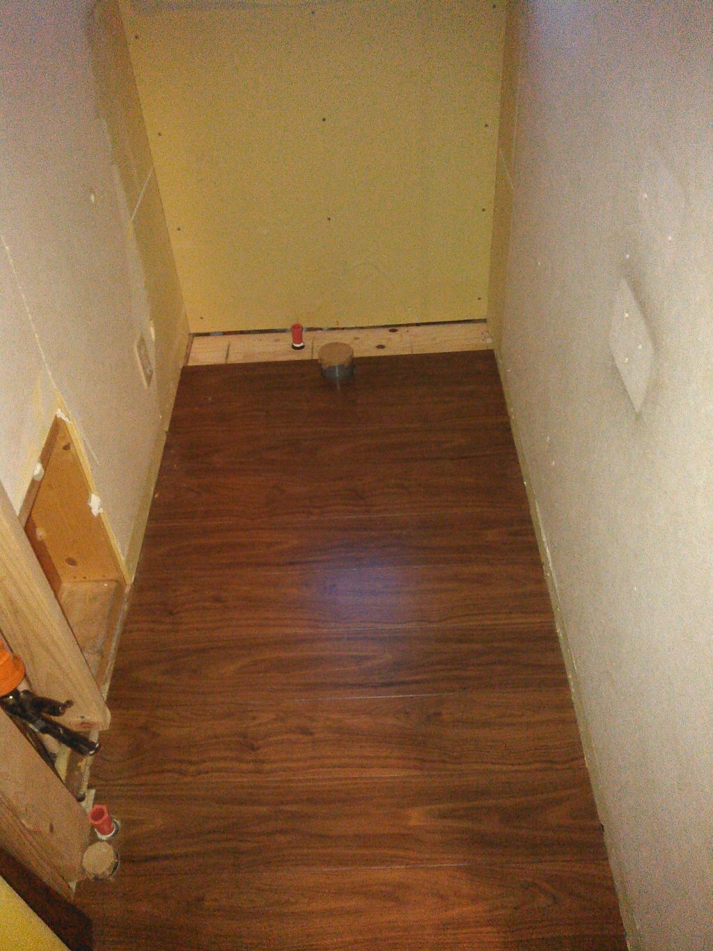 少しトイレのフローリング張が残りましたが、「やってしまおうか??、また明日の続きにしょぉかぁ?」悩みましたが、時間は7時前。辺りも真っ暗で、「焦ってもエエ事にならん!!」事は今までの数えきれないほどの、失敗の経験が教えてくれて。今日の作業はここまで。