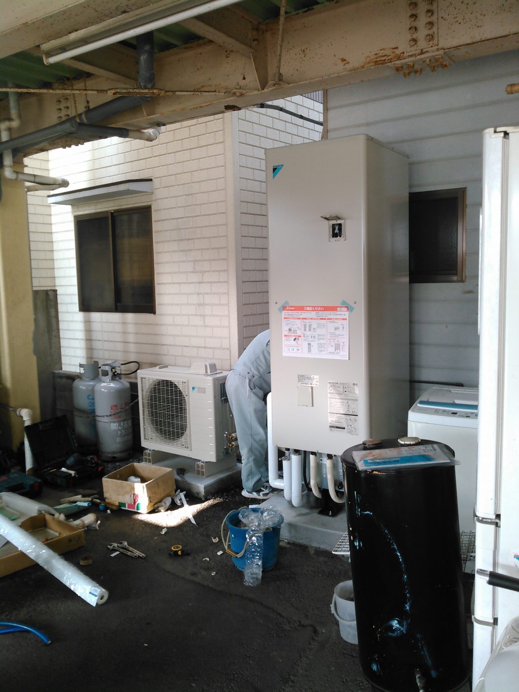 その他、エコキュート(お湯をつくる機械です)も無事水道屋さんが据え付けてくれました。