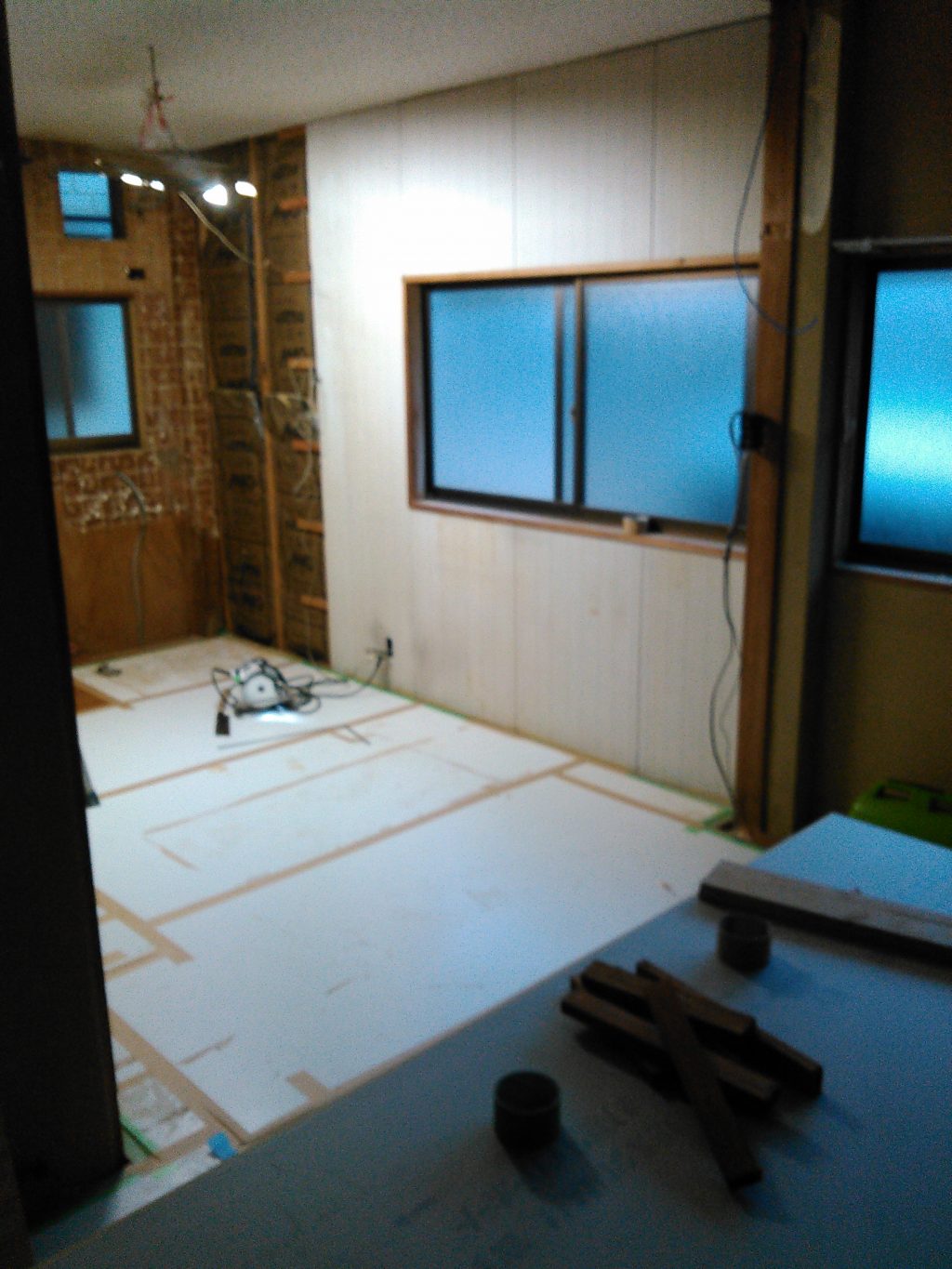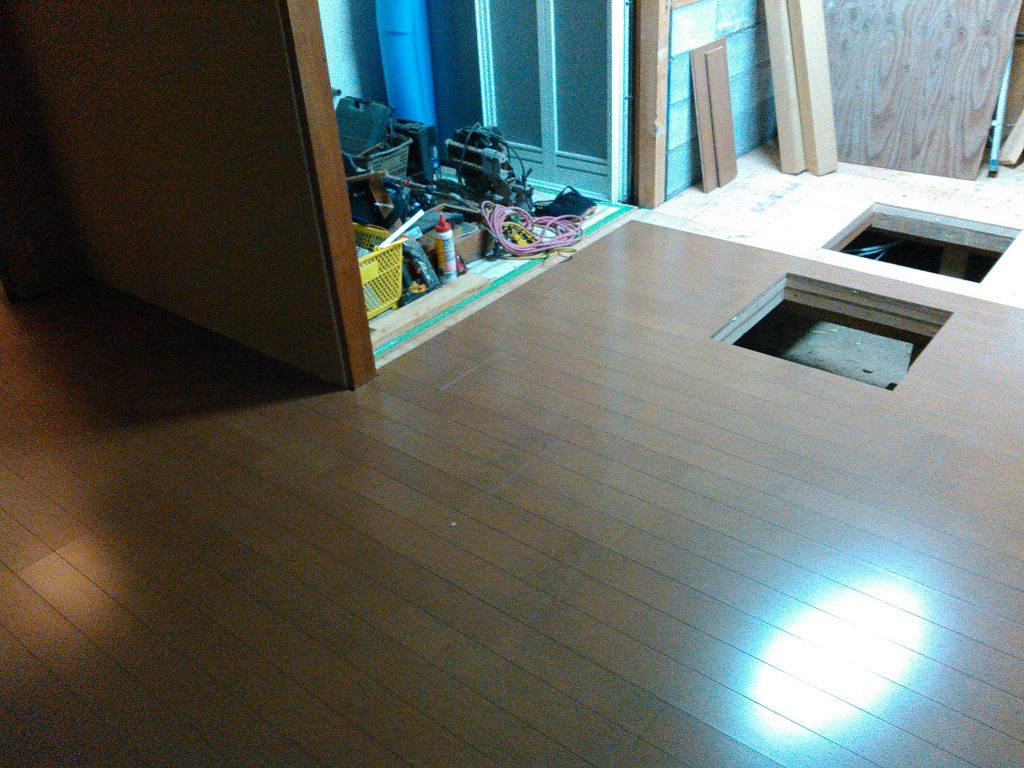 そして今日も児島のK様邸へお邪魔させてもらい、床のフロアー張り。床下収納2個に時間がとられましたが、なんとか全部張り終えました。