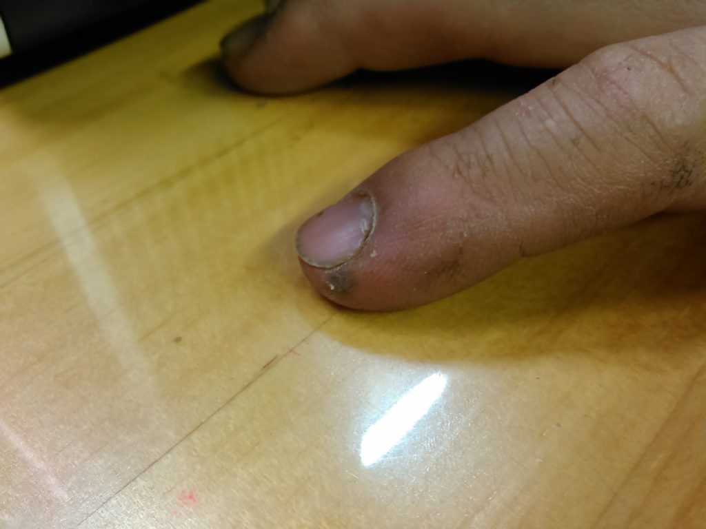 そんな、「ドシロウトの左手の大工さん」がなれない左手で釘を打っていたら、予想どうり「やっちゃいました。」