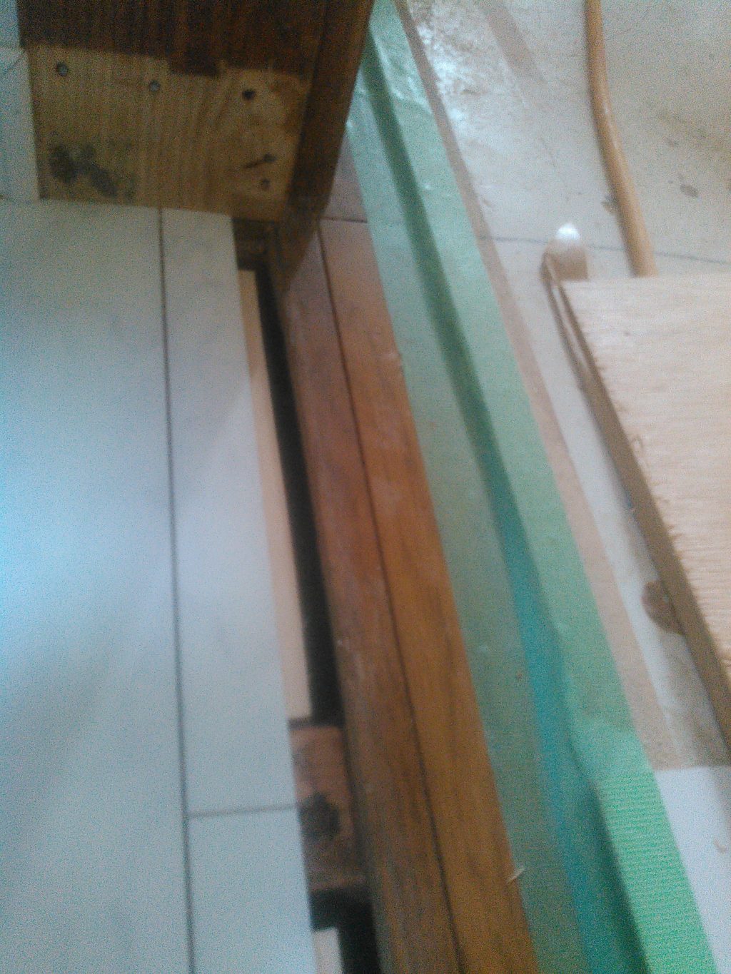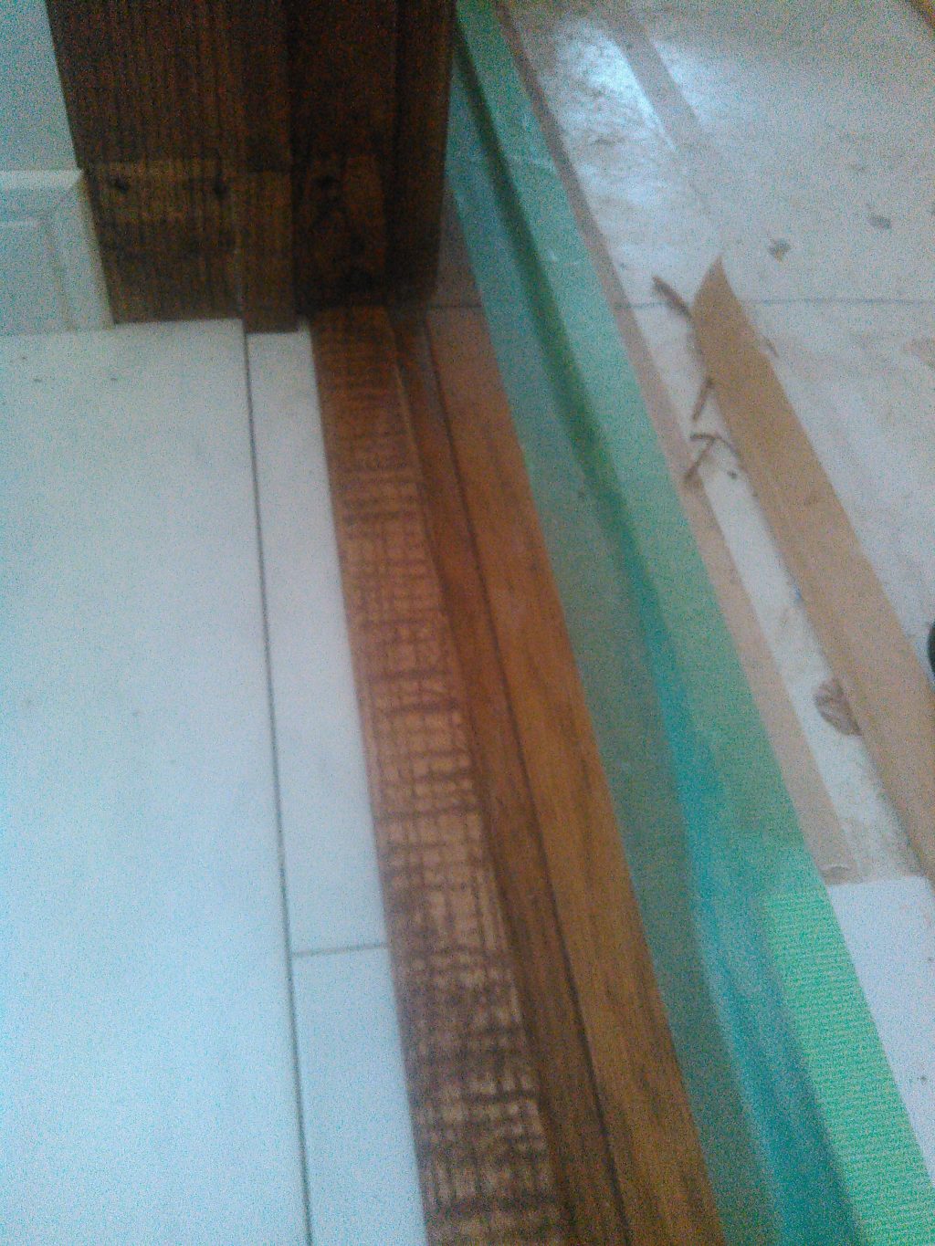 「えっっ。。」何がちがうん?? と思われるかもしれませんが、この写真は、現在トイレの部分と廊下の床の境目を写した写真ですが、もともと6センチほどの段差があったものを、今回の工事でバリアフリーに改良して、その補修工事を行なったものです。