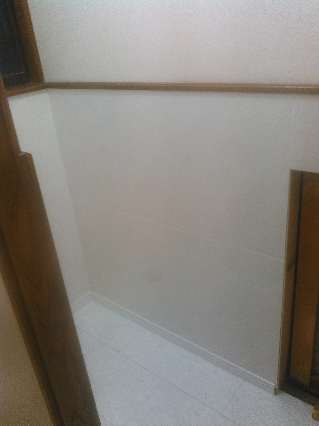 今回も腰壁には、雑巾で汚れが「すっっ、、、」と落ちるセラールと呼ばれる化粧板を張り、清潔なトイレが完成しそうです。そして今日の作業で一番大事な箇所を紹介しておきます。