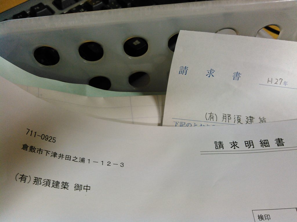 今月も当たり前ですが、請求書が各協力会社さん、材料屋さんの方から郵送で送られてきました。